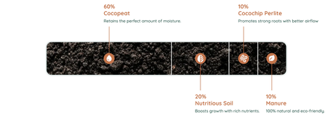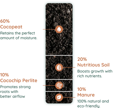 We craft a nutrient mix of cocopeat, manure, and perlite for optimal growth.